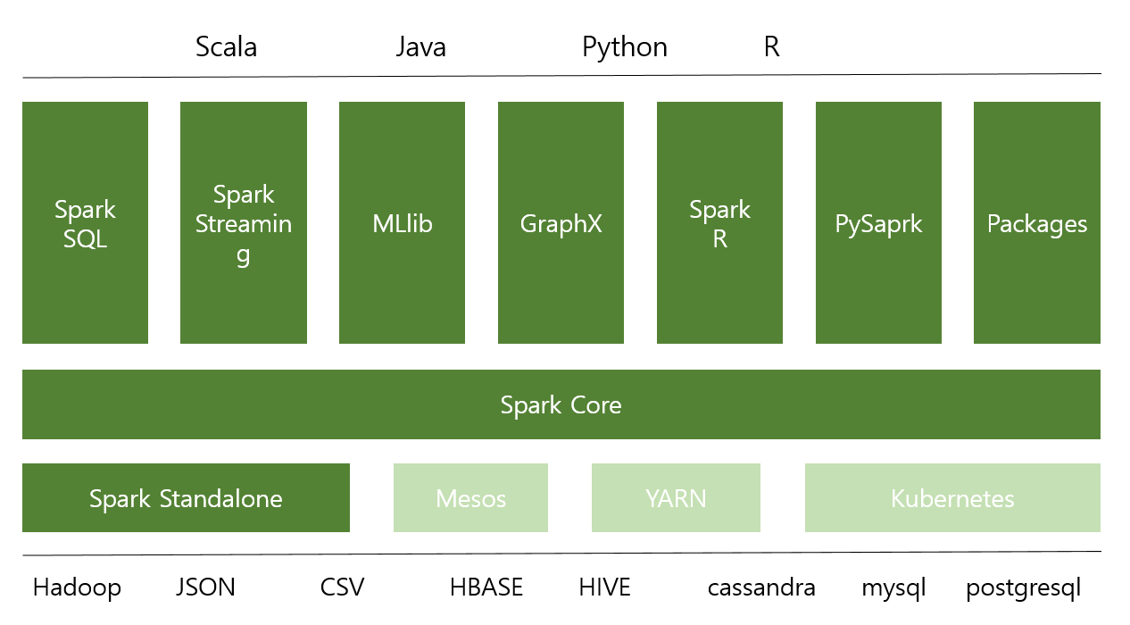 - 내결함성: Spark는 RDD(Resilient Distributed Datasets) 기능을 통해 내결함성을 지원하여 데이터 손실 없이 노드 장애를 복구할 수 있습니다.