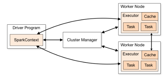 - Worker nodes: 작업자 노드는 드라이버 프로그램에서 정의한 처리 작업을 실행합니다. 각 작업자 노드는 해당 노드에서 작업 실행을 담당하는 Spark Executor를 실행합니다.